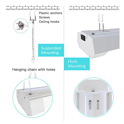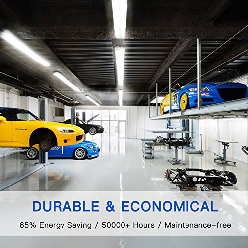 - [WIDE APPLICATION] The LED Utility Shop lights can be widely applied in garages, basements, workshops, entertainment rooms, storage rooms, warehouses, equipment rooms, industrial workstations, workspaces, showrooms and other large areas requiring lighting. It is an ideal choice for lighting.