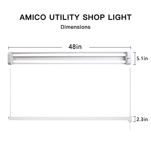 Amico 40W 4ft Linkable LED Utility Shop Light, 4800 Lumens Super Bright 5000K Daylight, LED Garage Light Fixture, Durable LED Fixture with Pull Chain Mounting and Daisy Chain 1 pack