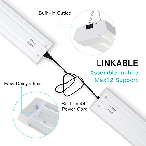 - [EFFORTLESS INSTALLATION] Its plug-and-play, linkable, integrated LEDs don’t need any additional bulbs. Using the included snap joints to hang it up, insert the plug to turn it on. It will offer enough light to work, allowing you to enjoy the benefit of evenly uniform lighting.
