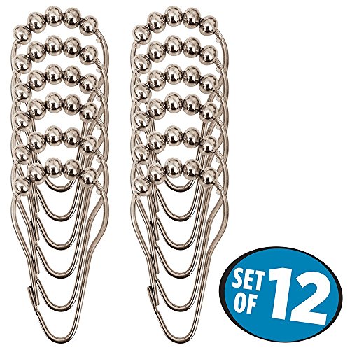 mDesign Steel Roller Shower Curtain Rings/Hooks - Set of 12, Satin Nickel