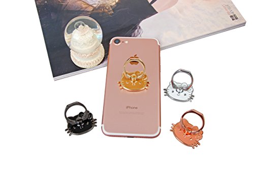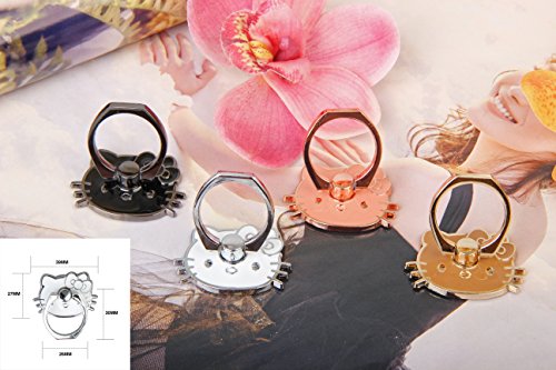 Phone Ring - Metal Hello Kitty Cat V3 - 360 Degree Rotation Full Metal Universal Ring Grip/Stand Holder for Any Smartphones and Device with Base Mounts (Gold)