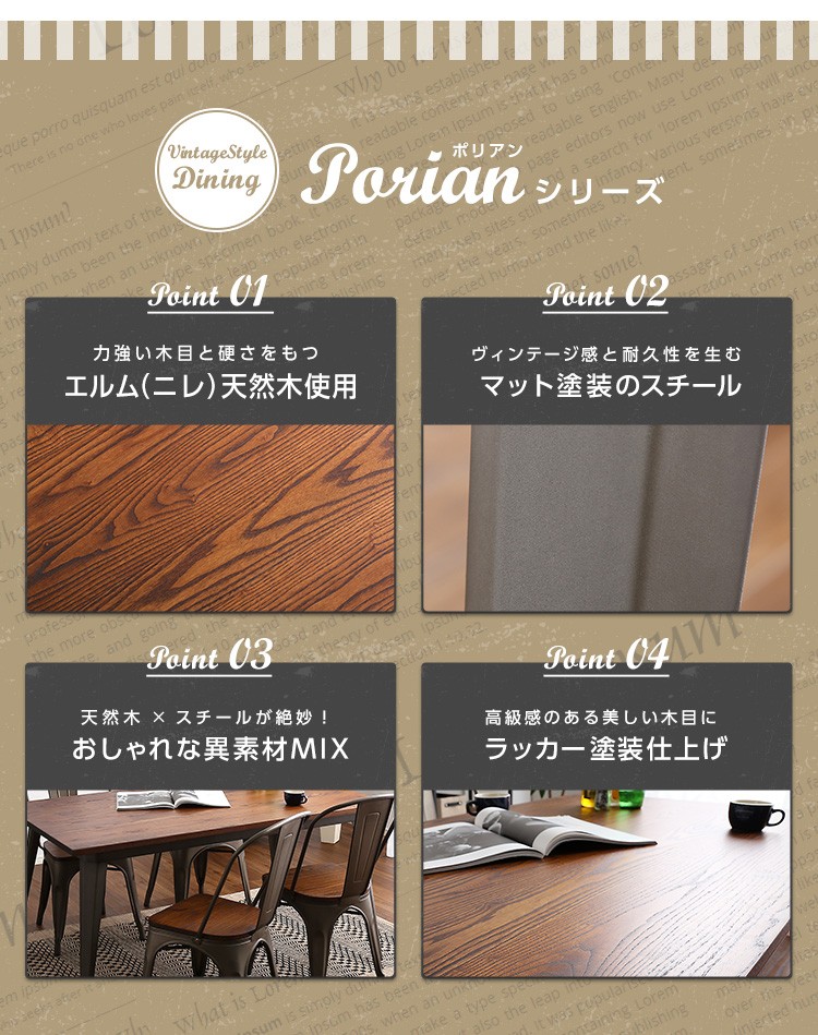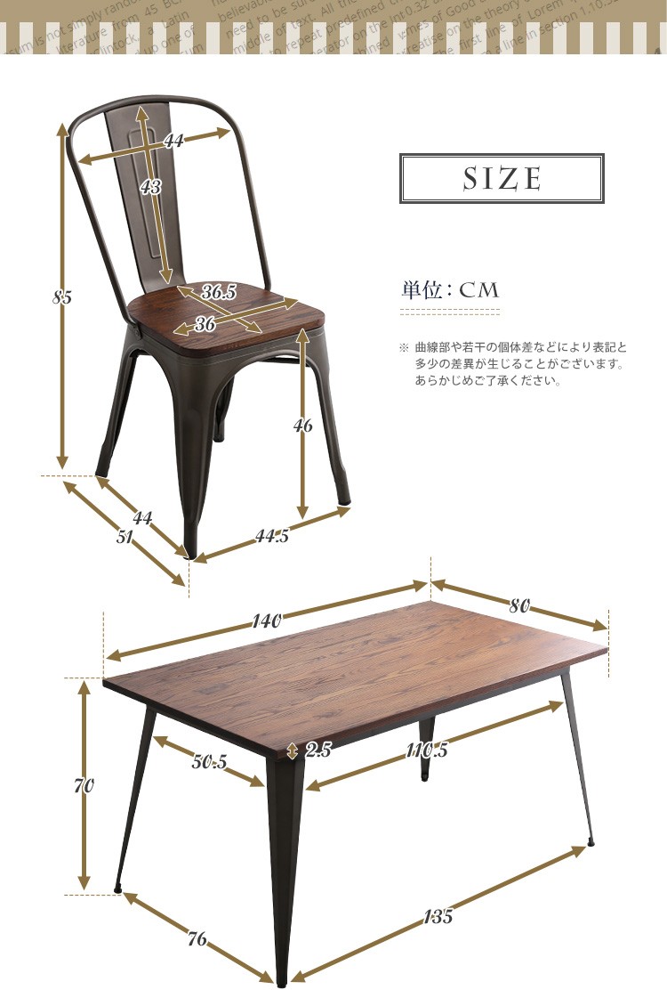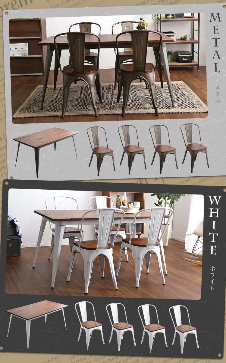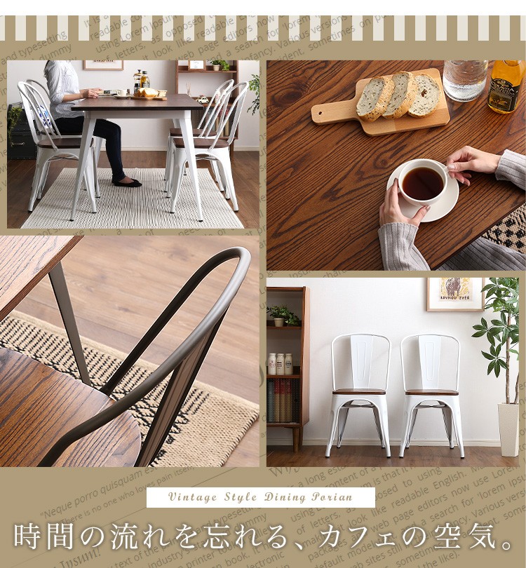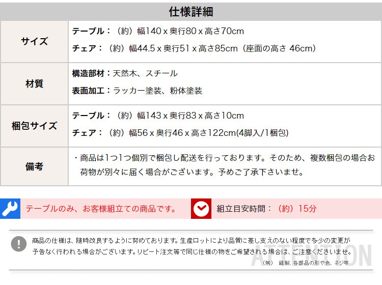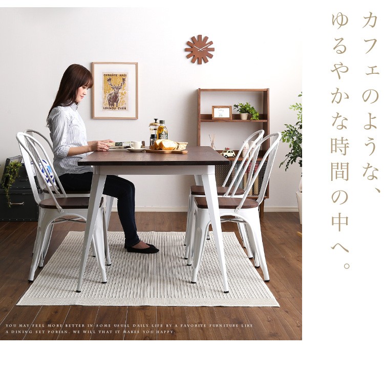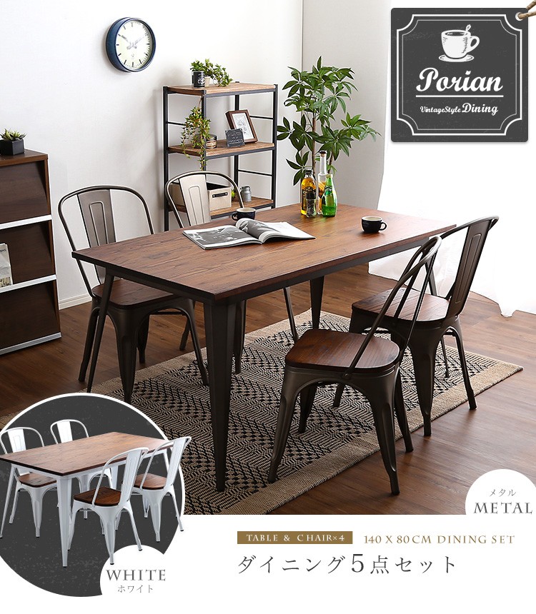 【商品について】アンティークデザイン ダイニングテーブル、ダイニングセット(5点セット)4人掛け、140cm幅|Porian-ポリアン-■サイズ:外寸:テーブル140cm:(約)幅140x奥行80x高さ70cm (約)23.2kgチェア4脚:(約)幅44.5x奥行51x高さ85cm (約)20.4kg■カラー:メタル ホワイト■素材:構造部材、甲板の表面材:天然木、スチール表面加工:ラッカー塗装、粉体塗装■その他:・テーブルのみ組み立て品。・梱包サイズ:テーブル140cm:(約)幅143x奥行83x高さ10cm (約)26kgチェア4脚:(約)幅56x奥行46x高さ122cm (約)23kg