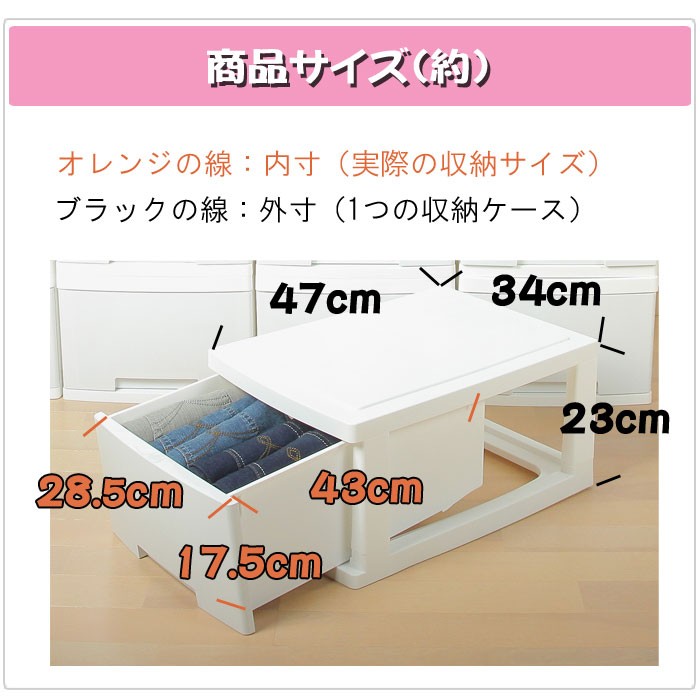 ◆サイズ◆外寸 1個:幅34×奥行47×高さ23cm内寸 :幅28.5×奥行43×高さ17.5cm配送梱包サイズ:36×50.5×57cm◆素材◆天板・底板:ポリプロピレン全面パネル:ポリスチレン組立て式◆注意事項◆※配送時期により、箱が湿気の影響で潰れてしまう場合がございます。※商品の生産時期により若干前面パネルの色味が違う場合がございます。ご了承くださいませ。※リビング収納商品以外との同梱はできません。 別々でご注文お願いいたします。 他商品との同梱ご注文の場合、送料の一部をご負担いただく場合がございます。ご了承くださいませ。 ***お届け指定日について***日、祝日に配送指定をされても地域により配送日時指定通りにお届けができない場合がございます。※沖縄、及び一部離島扱い地域におきましては、誠に申し訳ございませんが大型商品の為、ご注文いただけません。ご了承くださいませ。☆お客様ご都合ご返品の注意点☆お客様ご都合返品の場合、送料無料商品に関しましても発送時にかかりました送料はお返しできませんのでご了承くださいませ。発送時送料700円