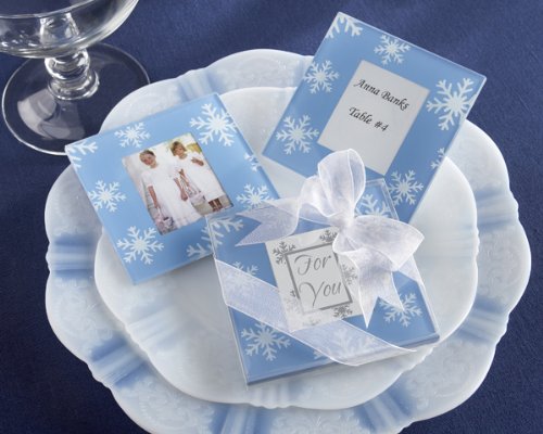 -. Title : "Snowfall" Exquisite Glass Photo Coasters - Baby Shower Gifts & Wedding Favors (Set of 24)