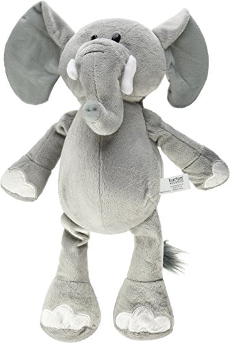 Product Description A plush, grey, baby elephant! Perfect for babies and toddlers. Gray elephant with white tusk and shoes. Black eyes and gray inside ears. Monogram Mable. 0