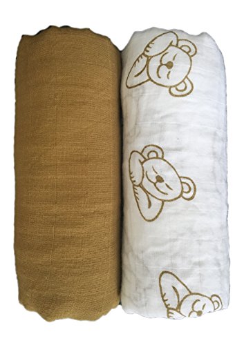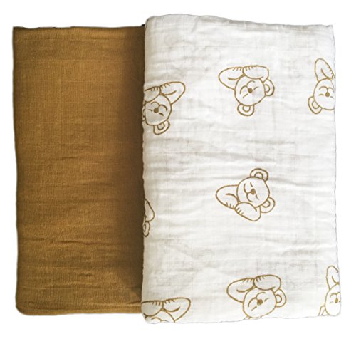 -. Title : Muslin Swaddle Blankets 2 Pack - Seben Baby - 47 inch x 47 inch - 100% Cotton - Bear