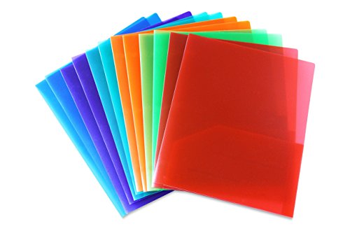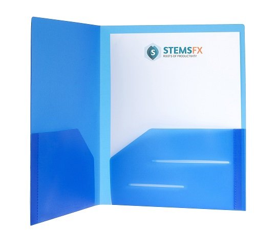 STEMSFX Embossed Heavy Duty Plastic Two Pocket Folder. Assorted Colors - Pack of 12
