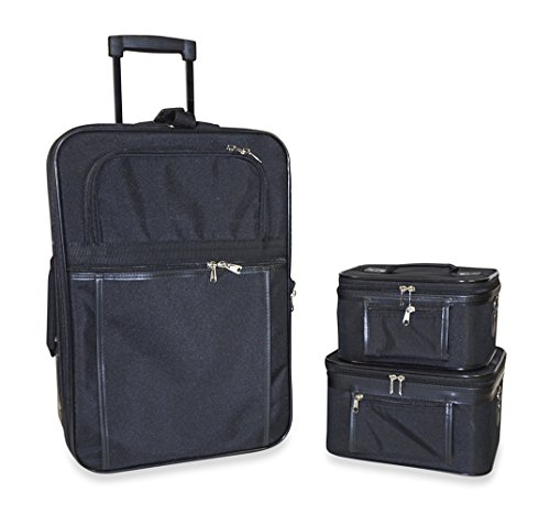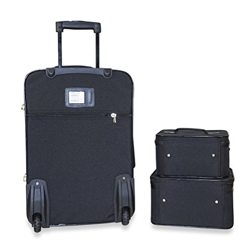 The luggage case is carry on size and easily fits in the overhead compartment of a plane. Never lose your boarding pass, ID, or other smaller items with its 2 front exterior zipper pockets. Its fashionable design makes it an ideal choice for transporting gear for dance teams and cheer squads, too!