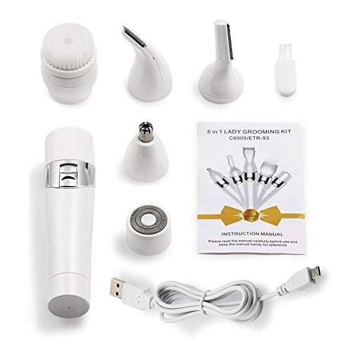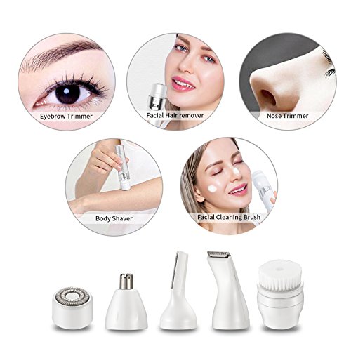 - ❤Multi-Use-5 in 1 Women shaver,facial hair removal ,ladies razor epilator,flawless hair remover face trimmer for bikini line eyebrow nose body armpit leg,facial cleansing brush head will meet all your needs