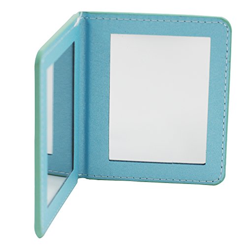 Rnow Deluxe PU Leather Folio Book Style Double Sided Compact Pocket Size Mirrors Blue