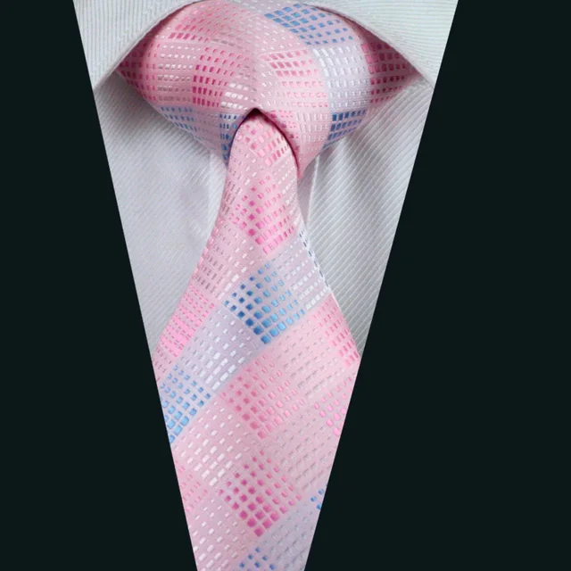 | [해외]DH-350 남성 넥타이 핑크 격자 무늬 넥타이 실크 자카드 남성 넥타이 비즈니스 웨딩 파티 무료 배송 |