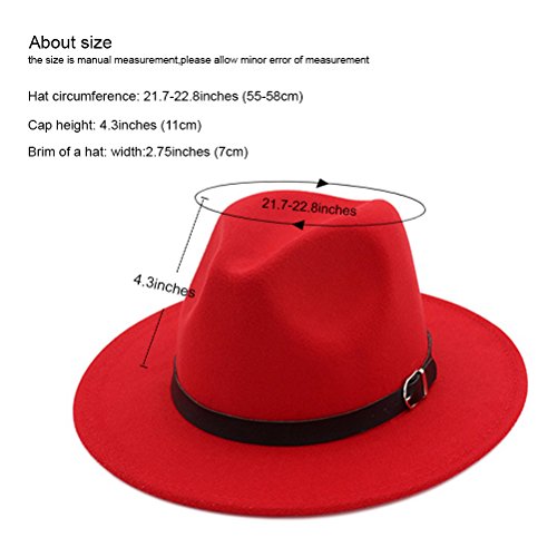 Binding : Apparel Product Description Description 1.Material: High-quality Wool. 2.One Size Fits Most Adults,Cloche Hat,Bucket Hat,Trilby Hat,Fedora Hat,Bowler Hat,Winter Hat,Vintage 3.Hat head circumference around from 55 to 58 cm. Hat height of about 11CM and brim width: about 7cm. Suitable for women,girls, youngster. 4.This Fedora Hat is cut from the softest felt so it feels luxuriously warm and cozy. 5.Perfect for many special occasions such as wedding, tea parties, church or simply cold weather hat. 6.The cloche bucket is crushable and can won't be misshapen when stuffed into suitcase,backpack and pocket. Great for travel and outdoor. 7.Please allow 1-2CM differs due to manual measurement ,Thanks for your understanding. Product Specification: 1.Quantity:1pc 2.Color: As the picture shows 3.Material:wool. 4.Size:One Size Package Content: (Send without retail package) 1x Fedora Hat