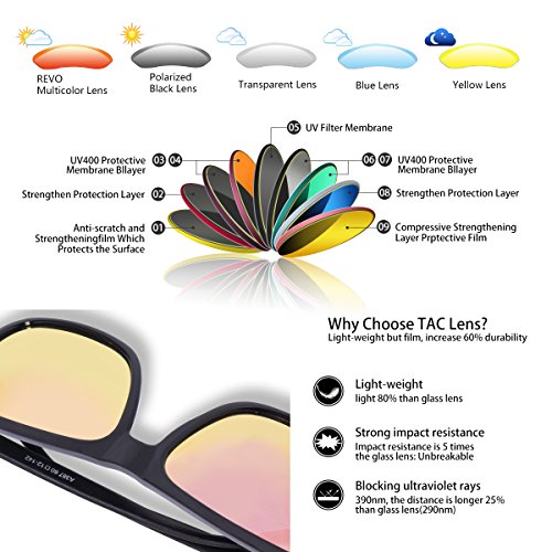 Polarized and 100% UV protection sunglasses helps: 1- Reduce eyestrain, no tired eyes after a full day in the sun. 2- Reduce reflections and glare (esp important for those with sensitive eyes or post surgury recovery) 3- Protect your eyes against harmful UV rays, minimizing damage to your eyesight in the long run. 4- Improve contrast and visual clarity Here are 5 Reasons you're Going to LOVE Your RAYSUN Classic Polarized Sunglasses: 1. It blocks 99-100% of both UVA and UVB harmful radiation 2. It has a special polarized filter to block over 99.96% of glare 3. Classic unisex design (So you can protect your eyes while looking stylish). 4. Backed by 30 DAY MONEY BACK GUARANTEE and a 1 YEAR WARRANTY when purchased from an authorized seller Brand*: raysun Tips 1- Nice gift package, making it a wonderful gift idea for your friend! 2- To avoid damage, never clean your sunglasses with paper towels or clothing, and also avoid using household detergents or soaps,just use clean water and included cloth. 3- Do not maintain the sunglasses in such bad environment of high temperature or long tme damp, to avoid deformation. 4.How to recognize POLARIZED glasses? - Before you wearing our glasses, the fish pattern on enclosed polarized test card is hidden, while with our glasses the fish is visible. ADD YOUR CART now because you literally RISK NOTHING! 0
