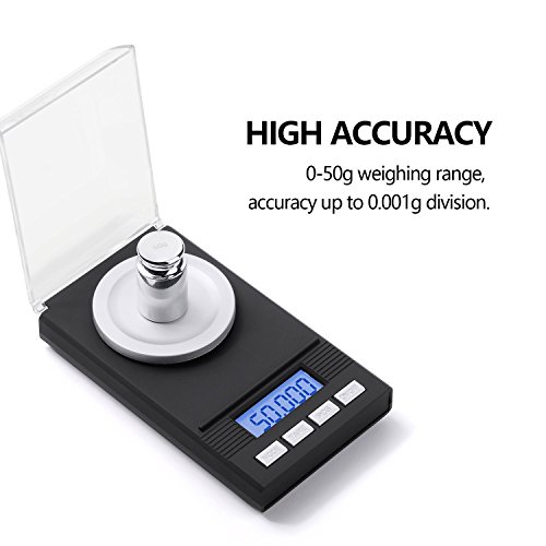 Accurate Digital Milligram Scale - Weighs up to 50 grams in 0.001 gram increments,Manufactured with high precision sensors to ensure accurate weight readings.