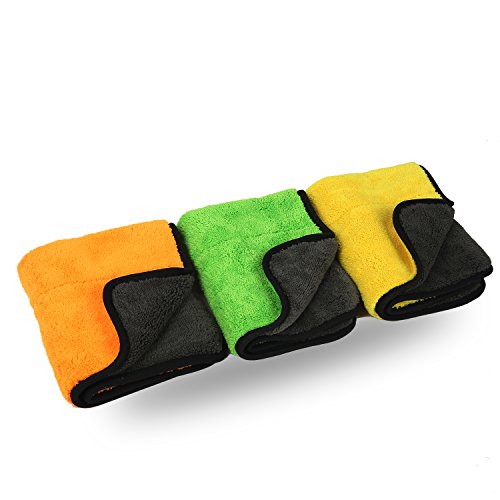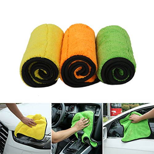 Auto Detailing Towel JIA JUN Ultra Thick Plush Microfiber Waxing Car Cleaning Cloth Kit 15" x 17.7" 840 gsm Pack of 3