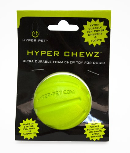 -. Binding : Misc. -. Brand : Hyper Pet -. Color : Green -. EAN : 5055281366562 -. Feature : Made of Ultra Durable EVA Foam / For the Power Chewer / It Floats for Summertime Fun -. Label : Hyper Products Inc. -. Manufacturer : Hyper Products Inc. -. Model : 48845EA -. MPN : 48845EA -. PackageQuantity : 1 -. PartNumber : 48845EA -. ProductGroup : Pet Products -. ProductTypeName : PET_SUPPLIES -. Publisher : Hyper Products Inc. -. Studio : Hyper Products Inc. -. Title : Hyper Pet Chewz Ball Dog Toy -. UPC : 885300540575