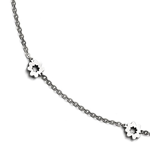 Stainless Steel Polished Flowers with 1in extension Anklet 9"