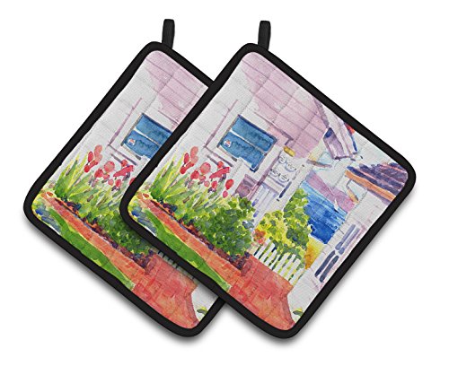 Caroline's Treasures Beach View Between The Houses Pair of Pot Holders 6125PTHD, 7.5HX7.5W, Multicolor