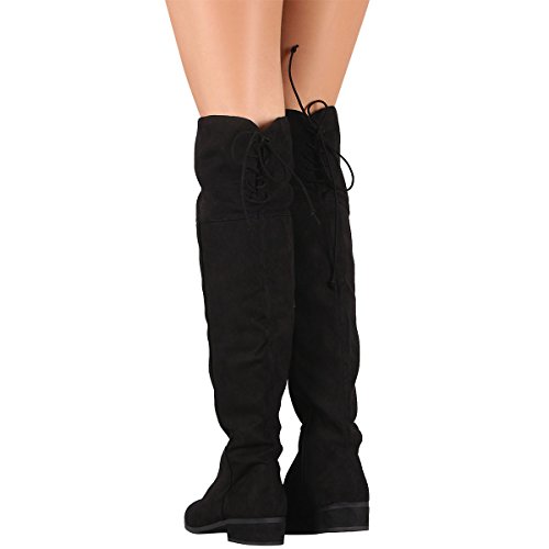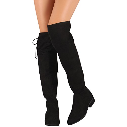 Binding : Apparel Product Description Over-the-knee boots remain our staple piece! This vegan friendly suede boot is the perfect addition to your "comfy but chic" shoe-drobe! These stylish riding boots feature a back slit with a corseting lace-up design, almond toe silhouette, and a low block heel. Finished with a lightly cushioned insole, faux fur lining, and partial side zipper closure for easy on/off 0