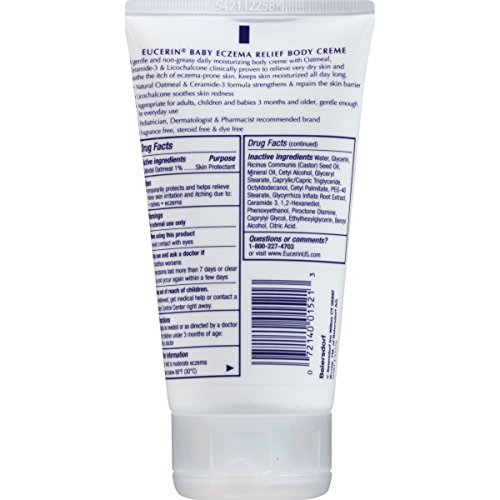 Protect and soothe baby’s dry skin irritation and itching due to eczema. Eucerin Baby Eczema Relief Body Creme is specially formulated to help relieve the very dry, irritated skin associated with eczema. Clinically proven to significantly improve hydration, Baby Eczema Relief calms itchiness due to eczema, and soothes red, irritated skin. Its gentle formula provides significant and long-lasting skin improvement. Eucerin Skin Science that Shows For over 100 years, Eucerin has pioneered skincare innovation, and today we are recognized and trusted by dermatologists as one of the leading and most recommended brands. Our products are designed to protect, repair, and enhance the health of skin - giving you and your family the feeling of confidence that comes from radiant, healthy looking skin.