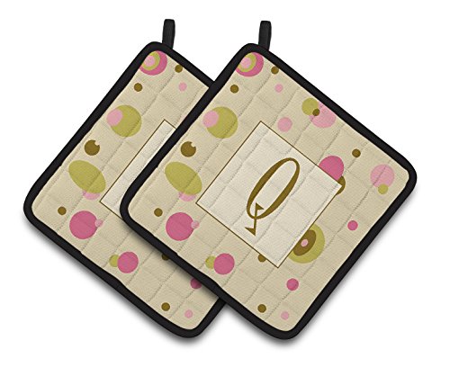 Caroline's Treasures Letter Q Initial Monogram - Tan Dots Pair of Pot Holders CJ1004-QPTHD, 7.5HX7.5W, Multicolor