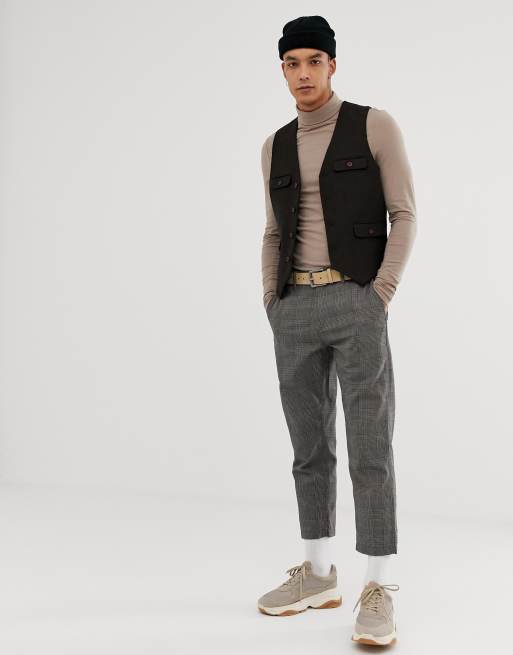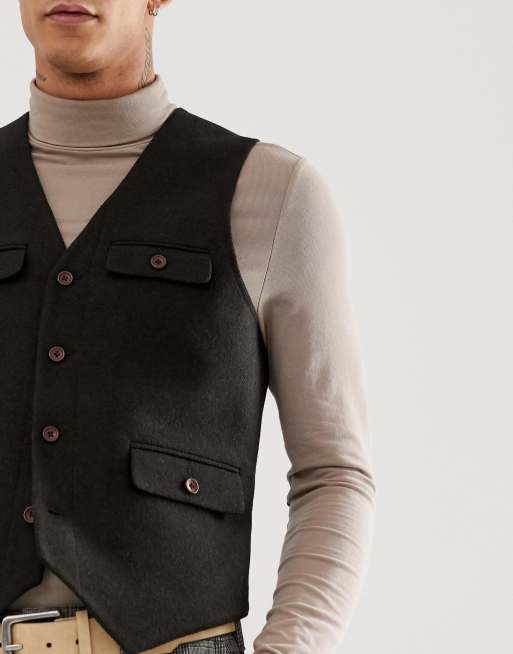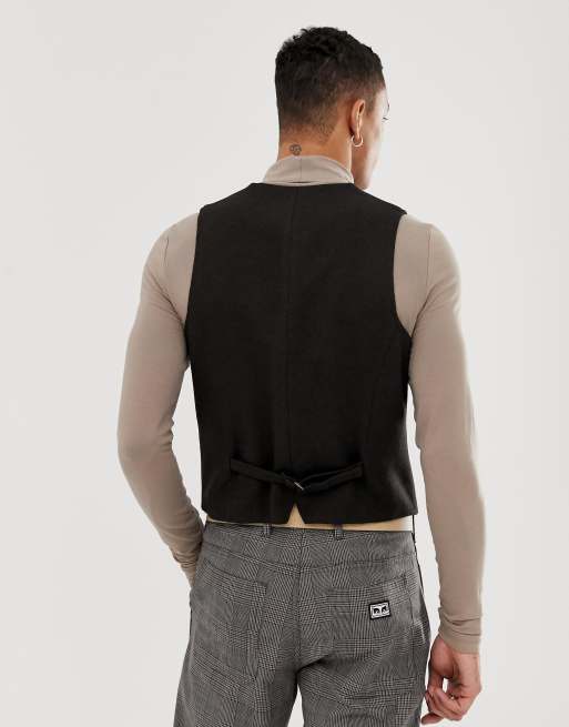 ASOS Skinny Texture Vest In Brown Wool Mix