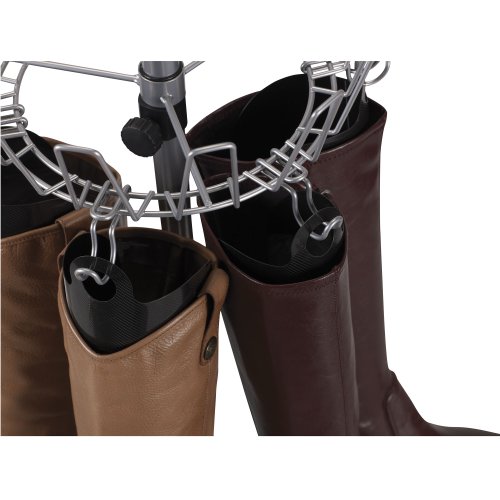 - Feature : Adjustable carousel holds a variety of boots and shoes / 12 Boot hooks easily slide on carousel / 4 Tiers holds up to 24 shoes / Includes six sets of boot shapers / 12" diameter by 52" high