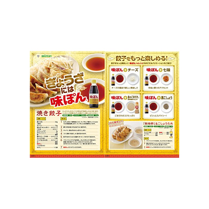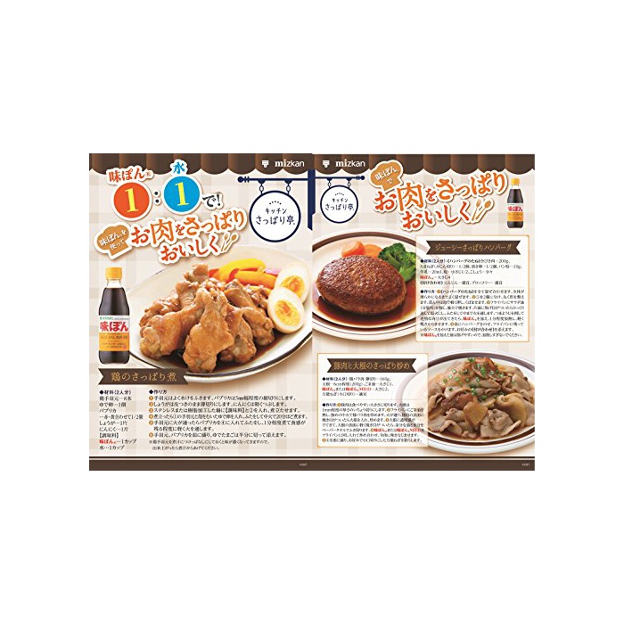 원재료:본양조 간장(대두:유전자조 교환이 아니다)고, 과당 포도당액당,감귤 과즙,양조초,식염,조미료(아미노산등)고, 신맛료,향료,(원재료의 일부에 밀을 포함한다)
