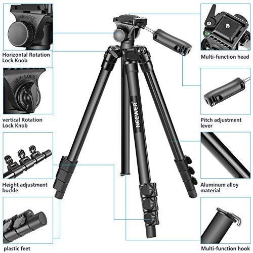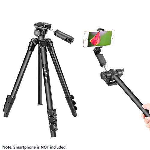 Neewer targbare Reise Kamera Telefon Stativ Monopod - 146 Zentimeter Aluminium mit Schwenk-Neigung Kopf und Telefon-Klemme fur Canon Nikon Sony DSLR Kamera, Video Camcorder, iPhone