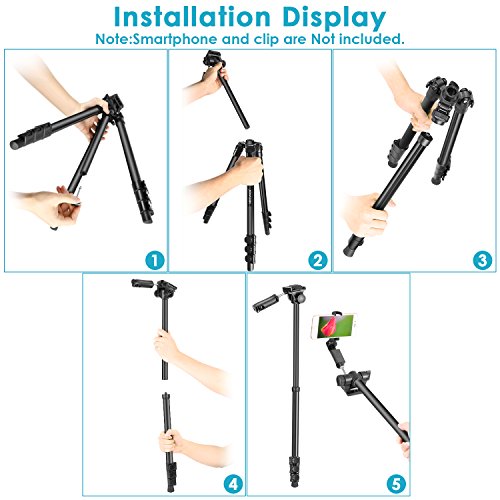 Bessere Wirkung: Dieses Kamerastativ kommt mit einstellbarer Mittelsaule, Schwenk-Neigung Kopf und Telefon-Klemme, um Ihnen mehr Bequemlichkeiten bei der Aufnahme des Fotos sowie Videos zu erhohen