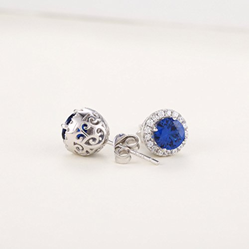 ♥Measurements - Earrings width: 0.4 in (0.9cm), weight: 0.1oz (2.7g). Stone: 6.0mm created sapphire 2pc, 1.3mm cz stone 34pcs