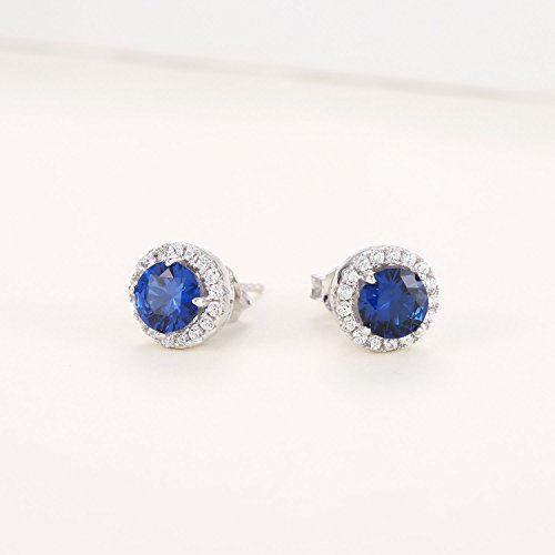 A terrific anytime look, these fashion frame stud earrings take the cake on her birthday. Crafted in 925 sterling silver with white gold plated, each coordinating earring features a 6.0mm lab-created bright blue sapphire wrapped in a dazzling border of sparkling lab-created white cubic zirconia. Buffed to a brilliant luster, these post earrings secure comfortably with friction backs.