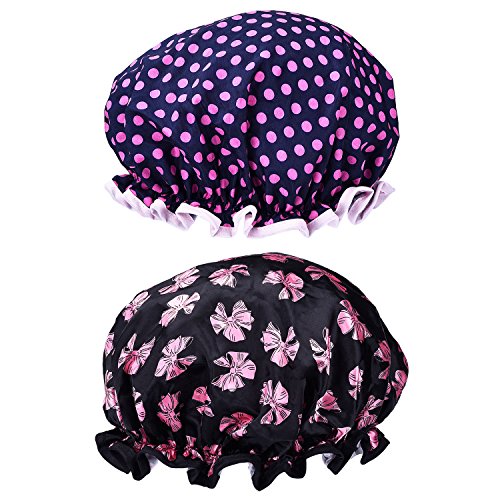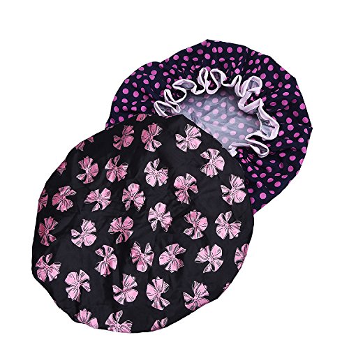 - Fashionable patterns: 2 x shower caps, one of shower cap has the polka dot pattern, another has butterfly knot pattern, good choice for showering, cooking, hair mask treatments