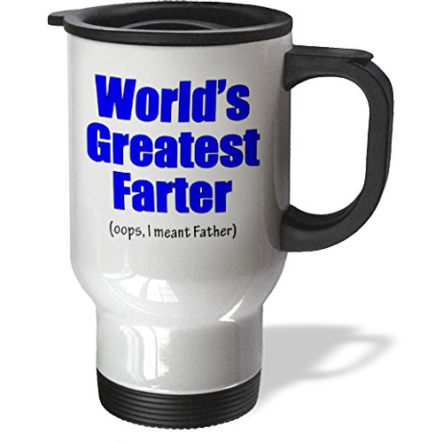 3dRose tm_193248_1 Worlds Greatest Farter Oops I Meant Father Blue Stainless Steel Travel Mug, 14 oz, White