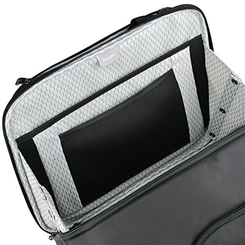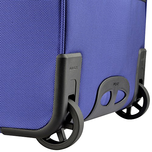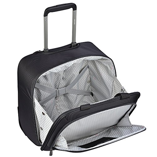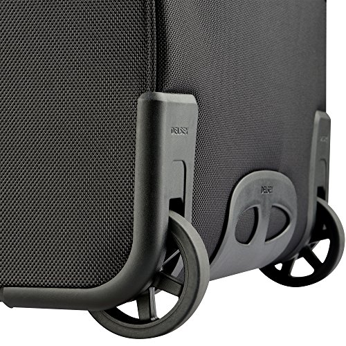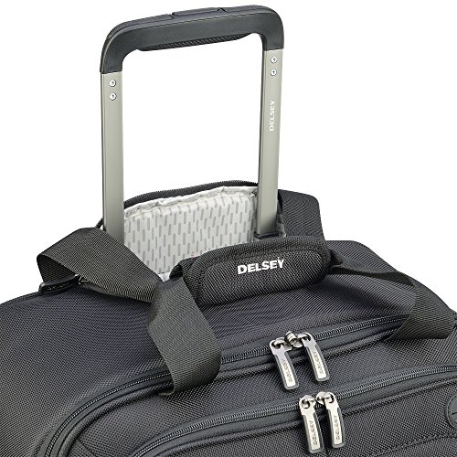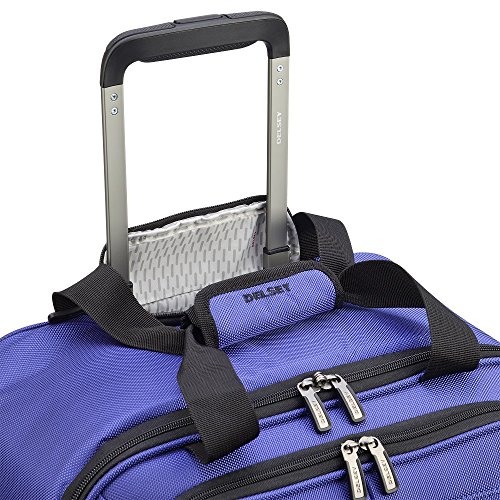 Studio : Delsey Luggage, Inc. Publisher : Delsey Luggage, Inc. Binding : Apparel Product Description Cruise Soft by Delsey Paris is made for the traveler who is looking for durable luggage with exceptional organization options. This 2 Wheel Under seater Carry On bag is perfect for quick trips or as an add on to your luggage collection. The exterior of this bag has one zippered compartment with a dedicated neoprene pocket for a power bank and cable port to charge electronics on the go. The trolley has a rubberized non-slip grip on the trolley handle and top carry handles for easy maneuverability. Use the smart band on the back of the luggage to slip over the trolley handle of your carry on or checked bag, or use as a rolling case with the two inline wheels. On the interior, this bag includes tie down straps keep your personal belongings secure, a double padded sleeve for a tablet and up to a 14" laptop. The 2 Wheel Under seater Carry On is made of ballistic nylon, which is extremely durable and resists dust, moisture and abrasion. Worldwide Limited 10 Year Warranty. 0