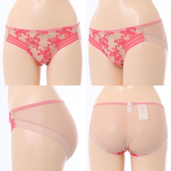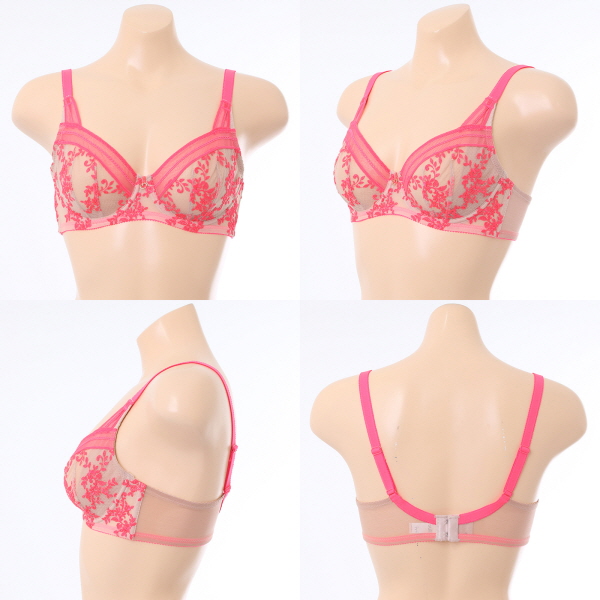 페미닌한 플로랄 패턴의 엔젤망 올오버 레이스 위에 모 던한 소폭 리버 레이스를 매칭한 풀컵 홑겹 브라,