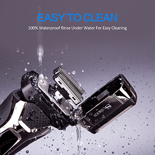 ADVANCED SHAVING:The Surker’s Suspended ultra-thin honeycomb metal foil effectively captures the hair of the problem, especially in the neck and chin areas.3 steel shaving elements work together for a close and gentle shave.With pop-up detail trimmer, thick growth, sideburns, and facial hair can be managed quickly and easily