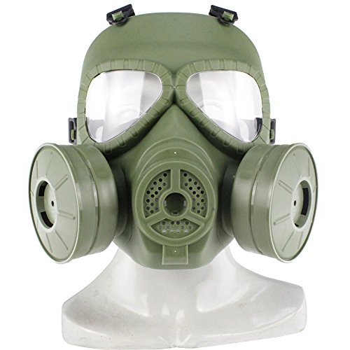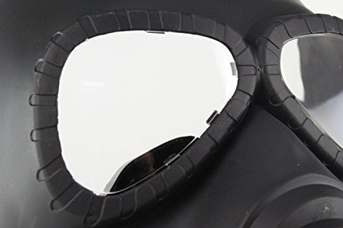 -. Feature : Made of engineering strong Thermoplastic polyurethanes (TPU), with display size of 7.3*7.6 inch , fits nicely on face and has a very comfortable EVA head cushioning pad / Note: No filter function. The lens will not be broken when on a strong impact of 5 joules / Shock resistant Engineering plastic,very tough and sturdy,high density nylon straps which can keep the mask stable in fierce competition / Excellent mask for airsoft game or movie shooting, cosplay, . Honorable person CS, masquerade, Halloween, Zombie Soldiers.Give you a feel of Fallout series / This product has passed ANSI Z80.3 drop ball test,and at a temperature of Minus 10 degrees Celsius to 42 degrees Celsius,the minimum impact resistance of the lens is 420 FPS.(the effective distance is 5 meters)