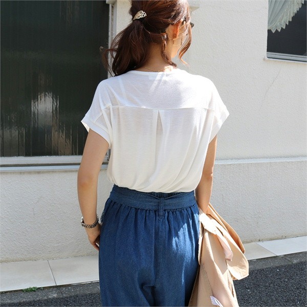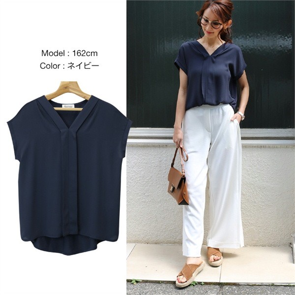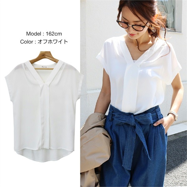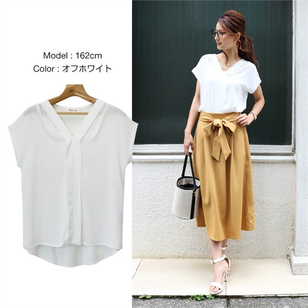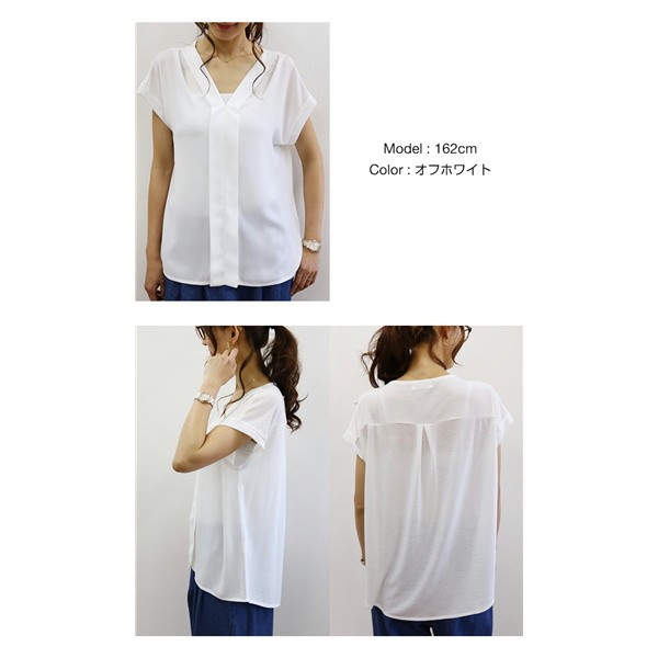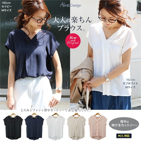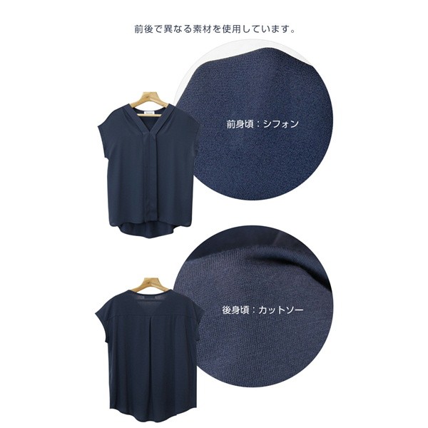 ★大人の楽ちんブラウス/シフォン素材★てろっとした落ち感がフェミニンなシフォン素材と伸びるカットソーを組み合わせた異素材ミックス・スキッパーブラウス!前身ごろは、上品なカットソーを使用し、見た目はキレイなコーデに使えるデザインながらも着脱時や着用時などは楽ちんな着心地!▼サイズ▼Mサイズ:着丈:(前身頃)58cm(後身頃)66cm 身幅:54cm 肩幅:55cm 袖丈:2cm 袖口:19cm 裾幅:58cmLサイズ:着丈:(前身頃)59.5cm(後身頃)67cm 身幅:55.5cm 肩幅:56cm 袖丈:2cm 袖口:19.5cm 裾幅:59.5cm※注意事項※ 商品画像はできる限り実物の色に近づけておりますが、モニター・ パソコン等の画像解像度により実際の商品と多少色味が異なる場合 がございます。 色味が異なる等のクレームはお受けできませんのでご了承ください。 海外・機械による生産のため、生地の継ぎ目に若干のズレや多少の ほつれによる形やサイズに多少の誤差が生じる場合がございます。 また、混紡繊維によって生地の織りに他繊維が混紡している場合も ございますが品質上の問題はございません。 予めご了承くださいますようお願いいたします。