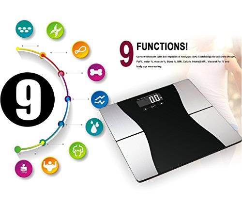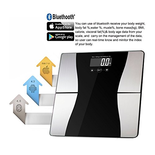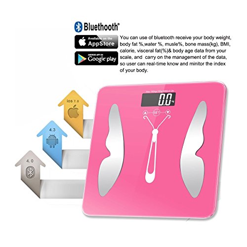 -. Brand : Blueberry -. Feature : Personal Digital Bathroom Scale With Intelligent "Step-On" Technology; / 400 pounds Capacity; Wide Tempered Glass Platform & Backlight LCD Display / Convenient Unit Button Switches Between Pounds, Kilograms, Stones / Powered by 4 x 1.5V AAA Batteries; Only needs to be calibrated once; Auto Shut off & Auto On function / 100% BlueBerry Satisfaction Guarantee and 2-years BlueBerry warranty. -. IsAdultProduct : 0 -. Label : BlueBerry Scales -. Manufacturer : BlueBerry Scales -. ProductGroup : Health and Beauty -. ProductTypeName : PERSONAL_CARE_APPLIANCE -. Publisher : BlueBerry Scales -. Studio : BlueBerry Scales -. Title : Blueberry Best Wireless Digital Body Fat Scale Bluetooth Measures Weight BMI Fat Water Calories Muscle Bone Mass Visceral for Bathroom and Bedroom Smart Step-on