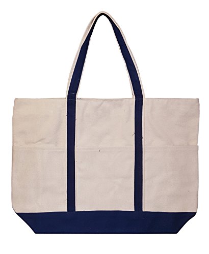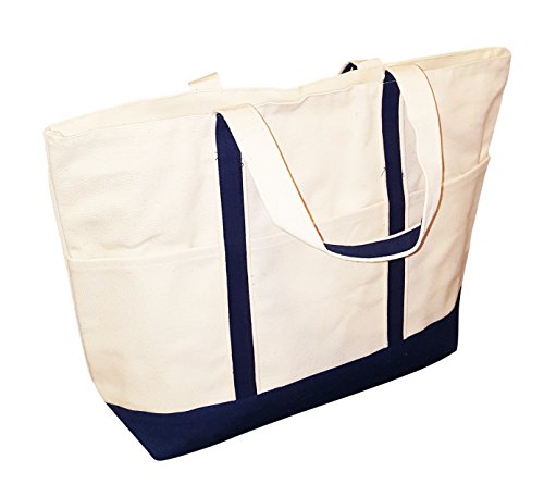 Heavy Duty 16 oz Canvas Natural Boat Bag Tote with Color Trim - Custom Available