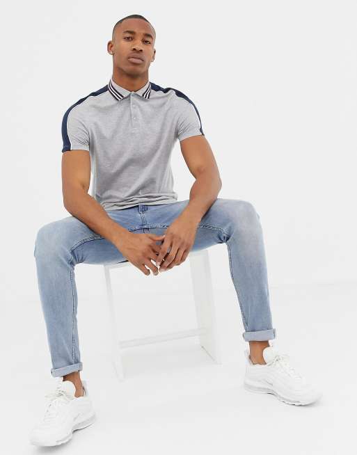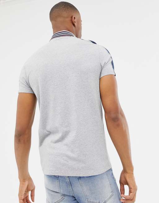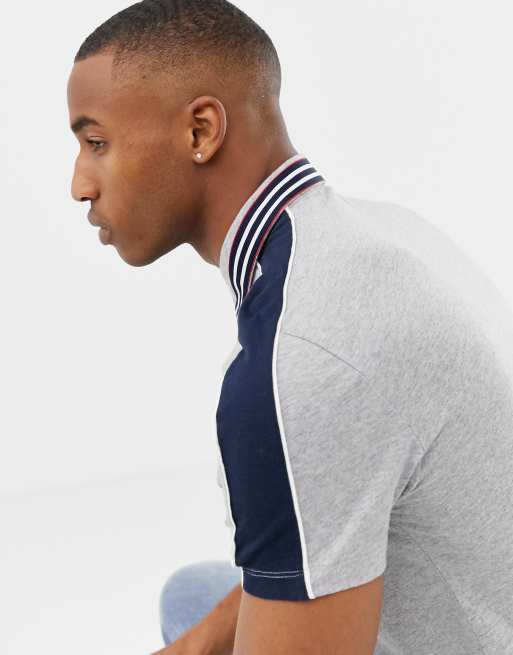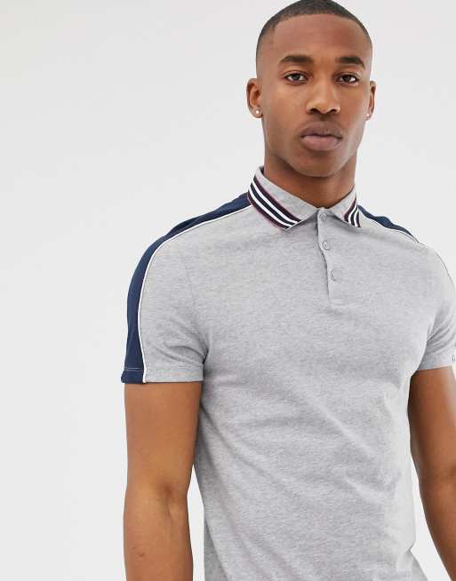 ASOS DESIGN polo shirt with contrast shoulder panels and collar taping in gray