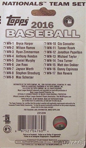 - 2016 Topps Baseball Washington Nationals Factory Sealed Special Limited Edition 17 Card Complete Team Set