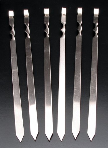 28" Stainless Steel Kebab Skewers BBQ 6 Pcs Professional Grade
