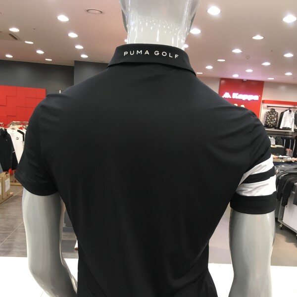 블랙색상의 깔끔한 디자인과 소매부분의 디자인이 돋보이는 2018년도 신상 셔츠.땀흡수에 용이해 여름에 간편하게 입을 수 있다.