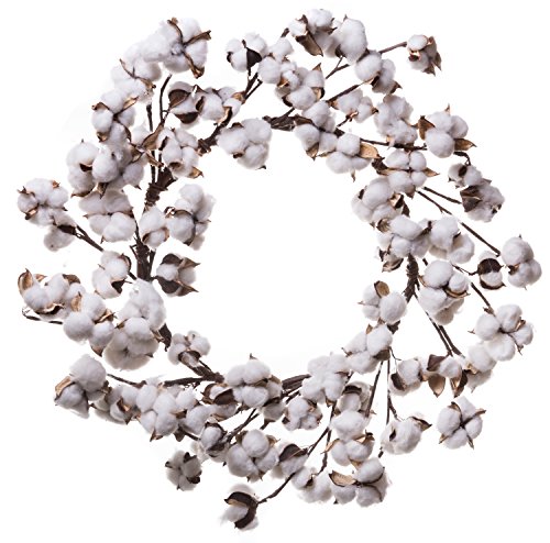- VERSATILE: The cotton plant is a HOT TREND and TIMELESS decorative piece that will bring an elegant & calming presence to any space ALL YEAR ROUND. Create a stunning and delightful CENTERPIECE for your dining or living room table surrounding a clear glass vase; Place it on a wooden shelf or hang on walls and doors to add a carefree feel. Use a different color of ribbon to turn this wreath into a seasonal item or add a red bow for a Christmas holiday look or tulips and green apple bow for spring.