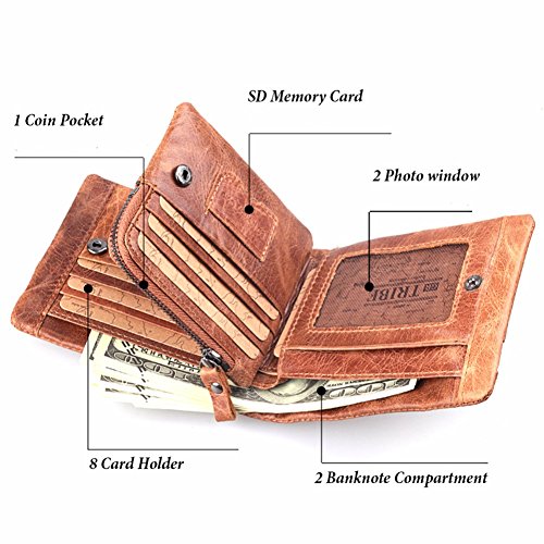 -. Binding : Apparel -. Brand : CZGBT -. Department : mens -. Feature : Quality: This extraordinary CZGBT wallet is made of 100% top quality genuine leather with hand-crafted by the finest workmanship. / Measures: 4.52 * 3.74 * 0.98 inches (11.5*9.5*2.5cm) / Functional Design: 6*Card Slots, 2*Window ID, 1*Zipper pocket, 1*Money Pocket and 1 coin zipper / Removable Card / ID Case 2-in-1 Use as a wallet or a card case / RFID: Radio Frequency Identification denoting technologies that use radio waves to identify people and objects carrying encoded chips. -. ProductGroup : Apparel -. ProductTypeName : ACCESSORY -. Size : Small -. Title : CZGBT Men's Classic Vintage Genuine Premium Leather Handmade Bifold Zipper Card Wallet