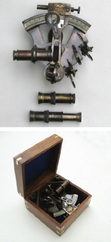 Brass Britsh Navy Style Sextant W/ Wooden Box 5" Antique Finish