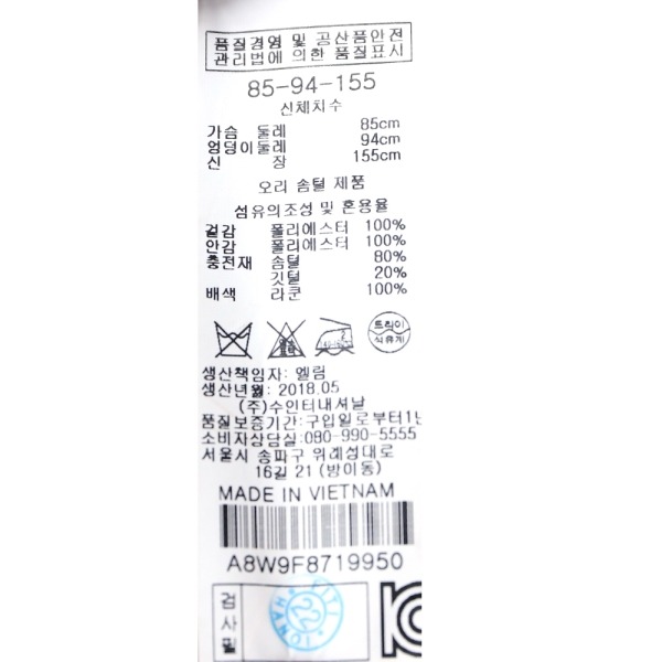 롱기장의 밑단 트임형식의 덕다운 패팅입니다