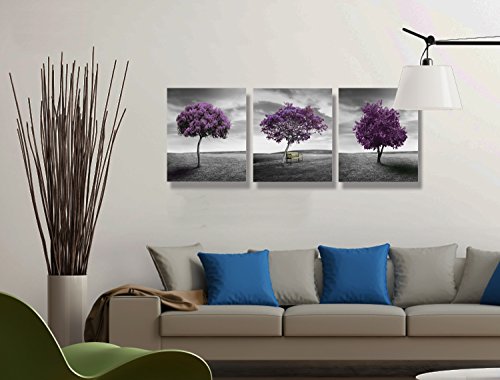 -. Title : Nuolan Art - Canvas P.R.Int 3 Panels PURPLE TREES Modern Landscape Framed Canvas Wall Art -P3L3030-003